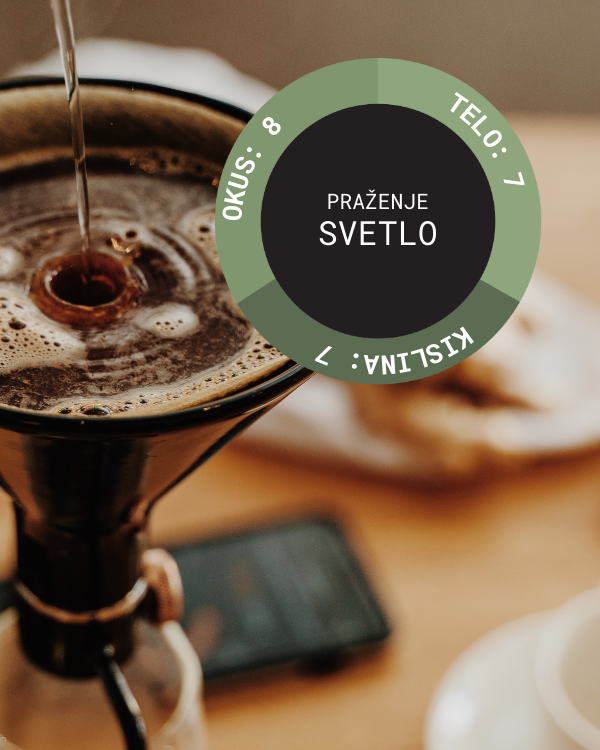 Stopnja praženja: svetlo (kavo pražimo hitro in svetlo, še posebej primerna je za filter kavo in cold brew).