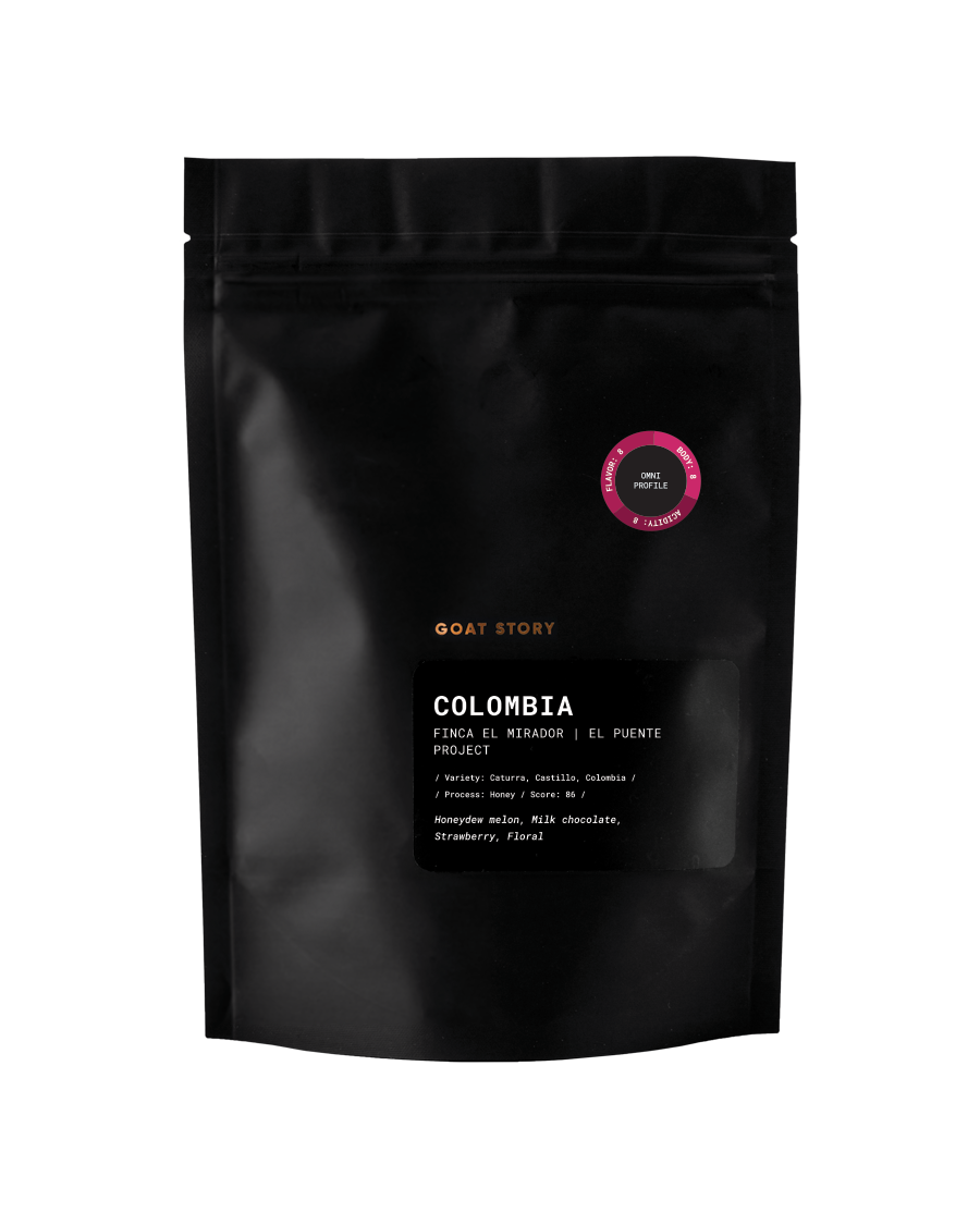 Ta kava ni le izjemno bogata in sadna, ampak ima tudi zanimivo ozadje: Projekt El Puente je pobuda podjetja Clearpath Coffee, ki združuje manjše pridelovalce. Na ta način znižajo stroške predelave kave in jih povežejo z ljubitelji kave po vsem svetu. Ta kava prihaja iz posestva Finca El Mirador in je odličen primer, da kolumbijske kave na potrebujejo eksperimentalnih načinov procesiranja.